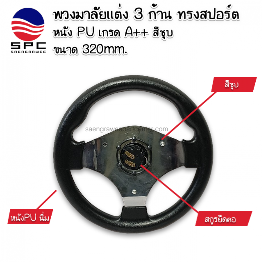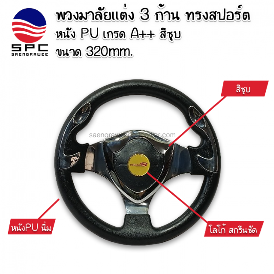 พวงมาลัยแต่ง 3 ก้าน ทรงสปอร์ต หนัง PU เกรด A++ สีชุบ ขนาด 320mm.