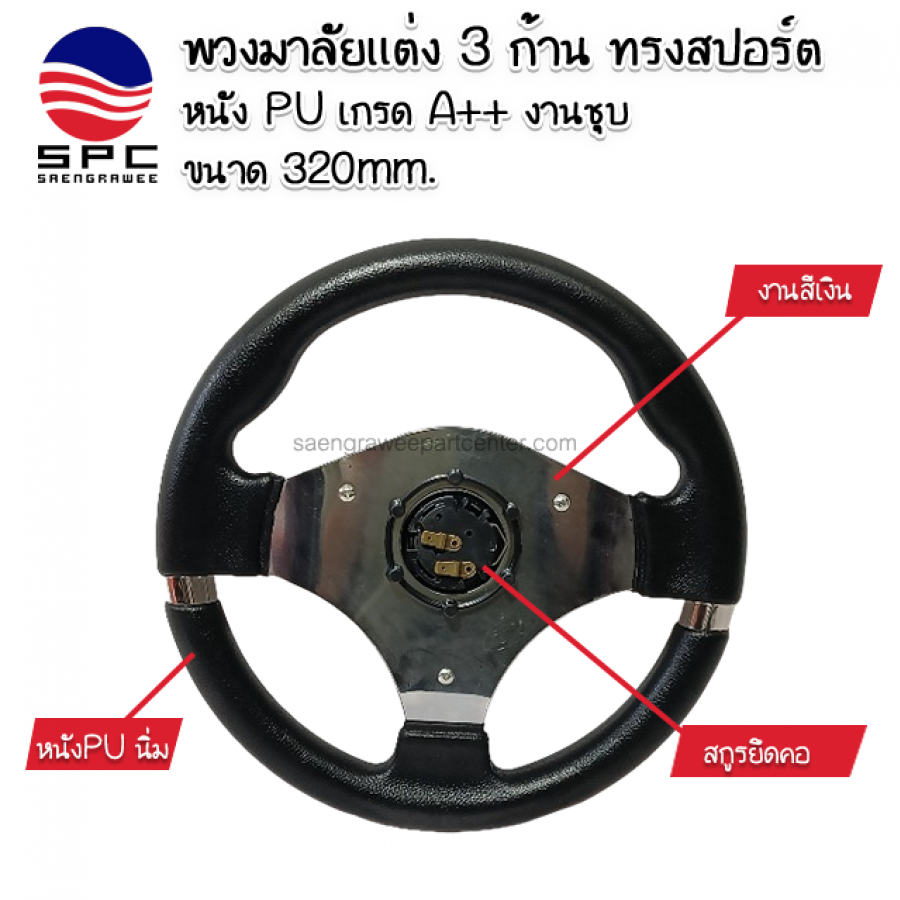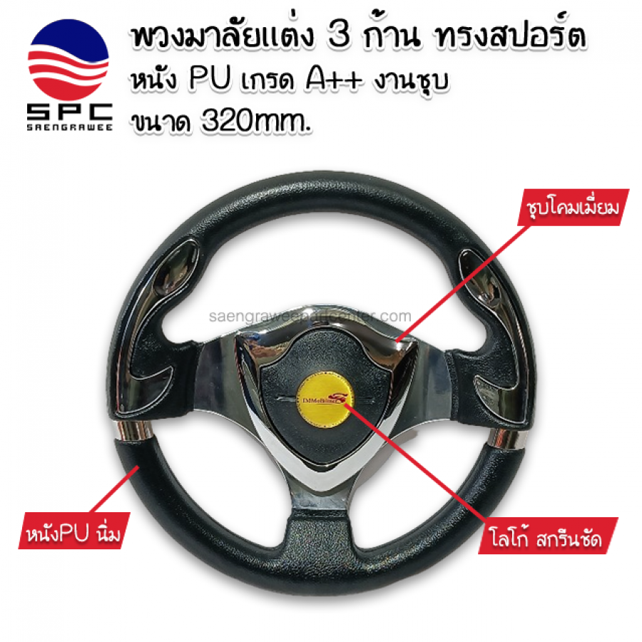 พวงมาลัยแต่ง 3 ก้าน ทรงสปอร์ต หนัง PU เกรด A++ วานชุบ ขนาด 320mm.