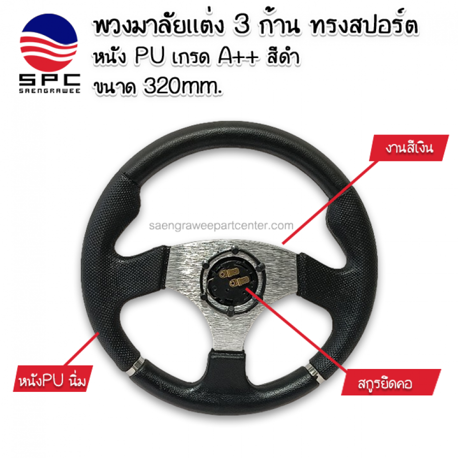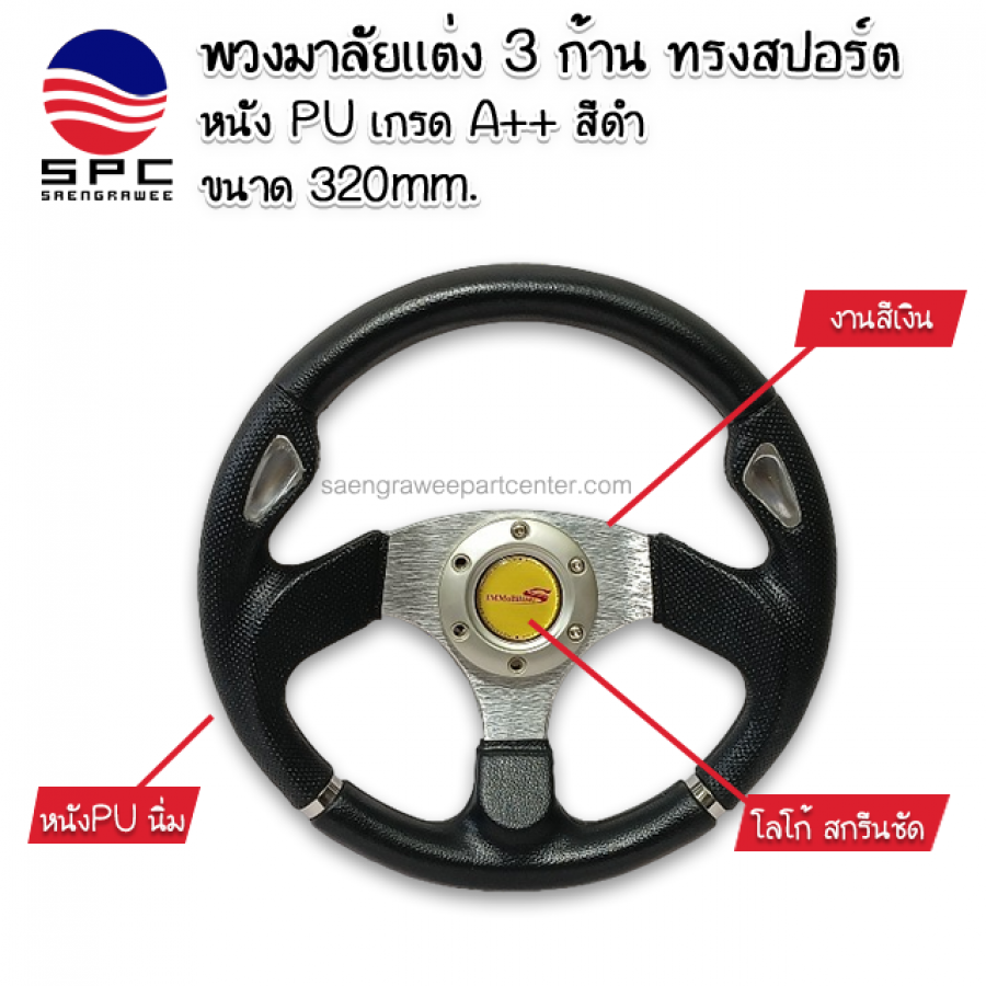 พวงมาลัยแต่ง 3 ก้าน ทรงสปอร์ต หนัง PU เกรด A++ สีดำ ขนาด 320mm.