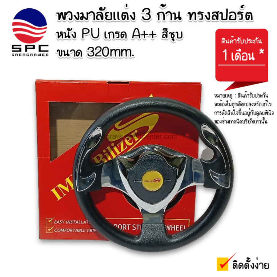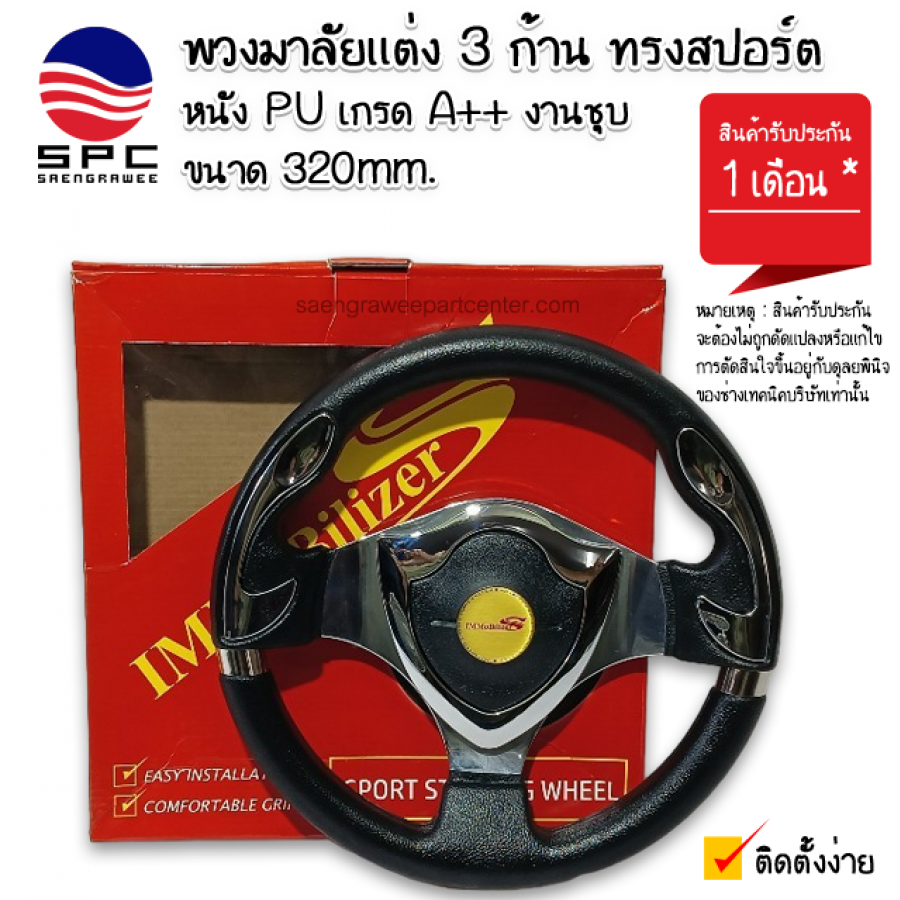 พวงมาลัยแต่ง 3 ก้าน ทรงสปอร์ต งานชุบ ขนาด 320mm.