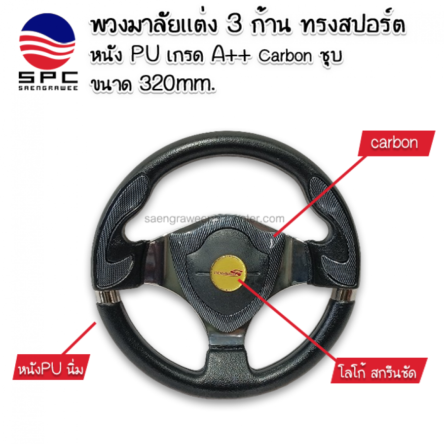 พวงมาลัยแต่ง 3 ก้าน ทรงสปอร์ต Carbon 320MM.
