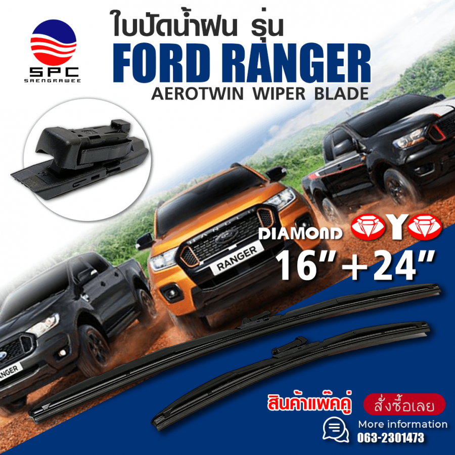 ใบปัดน้ำฝน DIAMOND EYE ทรง FORD RANGER ขนาดไซส์ 16\" กับ 24\"