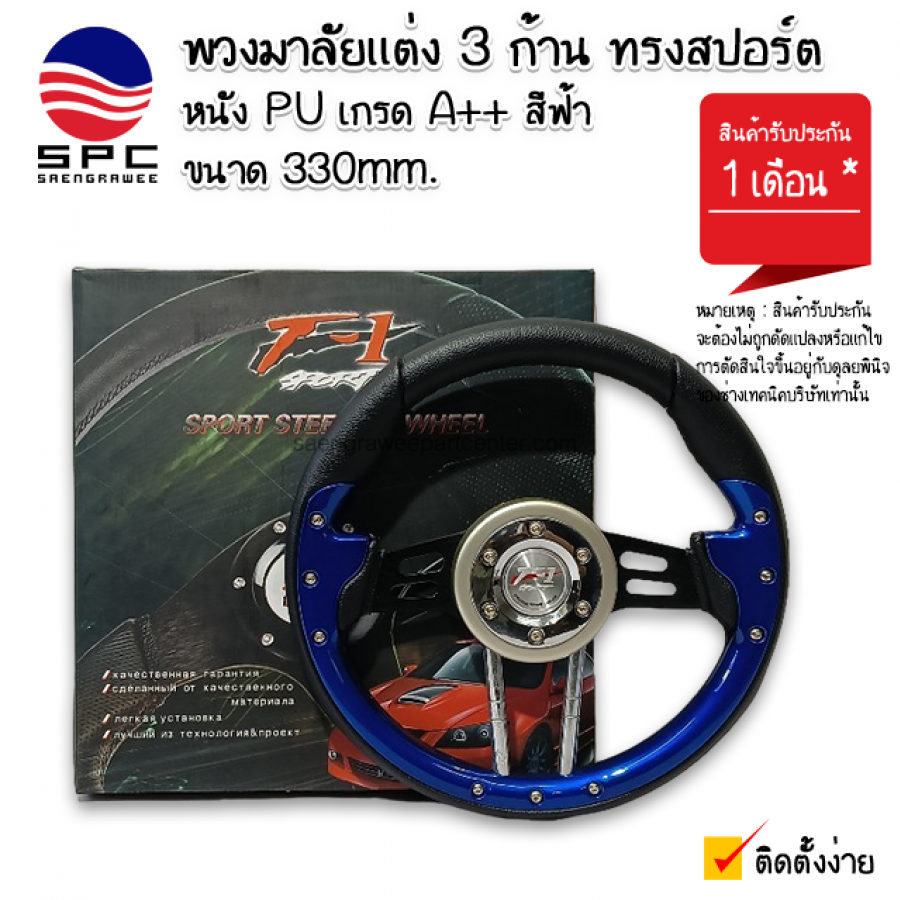 พวงมาลัยแต่ง 3 ก้าน ทรงสปอร์ต สีฟ้า 330MM.