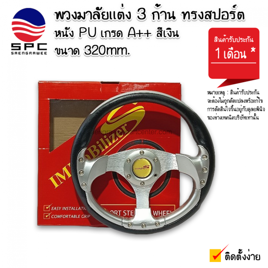 พวงมาลัยแต่ง 3 ก้าน ทรงสปอร์ต สีเงิน 320MM.